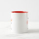 Café de férias bonito/caneca de cacau quente apresenta um rosto feliz de boneco de neve de inverno com bochechas rosadas quentes, nariz de cenoura, olhos e sorriso feito de carvão. Cor de design branco de neve, preto, rosa e laranja. Personalizar com um nome ou outro texto personalizado. O estilo de caneca vermelha de dois tons pode ser modificado.