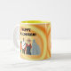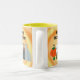 Uma pintura divertida de quatro crianças em fantasias, como uma abóbora, dado, cowgirl, e um fantasma, com Feliz Halloween, é impressa em ambos os lados de canecas personalizadas. O fundo atrás das crianças é uma espiral amarela e laranja. O texto pode ser personalizado; certifique-se de personalizar ambos os lados a e b. Obrigado por comprar em CherylsArt no Zazzle.
