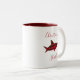 Uma caneca de "Tubarão de Natal" em vermelho e branco com uma design de tubarão em xadrez de búfalo vermelha e preta. A design de tubarão está de ambos os lados e as palavras são personalizáveis.