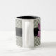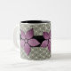 Flores Sassy e Trendy Damask Striped Border Mug apresentando um fundo damasco elegante e uma banda listrada com flores damasco. Esta caneca de na moda é uma escolha excelente para tomar o café da manhã ou qualquer outra bebida favorita! Personalize com seu nome ou outro texto para dar a este design um toque pessoal.