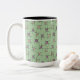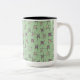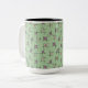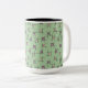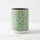 Caneca De Café Em Dois Tons Flores e palitos geométricos sobre fundo verde