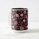 Uma caneca encantadora com flores silvestres moles em rosa de colheita e burgundy em fundo de ameixa profunda. Um toque romântico para seu café da manhã ou chá da noite.