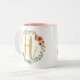 caneca floral com uma coroa de flores e um guião bonito, manuscrito, inicial.