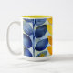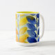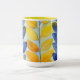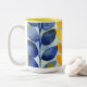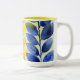 Caneca De Café Em Dois Tons Folhas Amarelas e Azuis