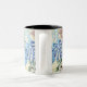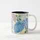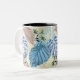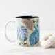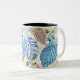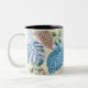 Caneca De Café Em Dois Tons Folhas tropicais azuis e roxas.