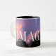 O design do wraparound nesta caneca inspirada é uma fotografia original das nuvens no céu oriental que reflete o por do sol no oeste, sobre o Golfo do México. O céu tropical da noite é banhado em um fulgor cor-de-rosa morno acima da silhueta escura das palmeiras. As nuvens estão tornando-se as formas muito interessantes, olhando quase como brinquedos macios ou… uso sua imaginação… que as cores cor-de-rosa macias das nuvens completas perto da parte inferior da foto intensificam como o sol bate as formas grossas, billowing das nuvens mais grossas que aumentam no céu. As formas inchado na parte superior das nuvens têm destaques amarelos. É centrada sobre a foto em torno da caneca a palavra IMAGINA, em letras principais brancas finas altas. Este texto está ajustado para ser personalizado, ou suprimido enquanto você gosta.