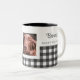 Caneca De Café Em Dois Tons Foto do Cachorro Gingham Branco Preto
