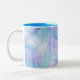Esta caneca de dois tons apresenta arte fractal abstrato em azul e verde.