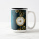 Caneca De Café Em Dois Tons Fundo de turquesa Steampun com engrenagens