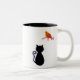 Caneca De Café Em Dois Tons Gato Negro e Pássaro Vermelho