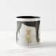 Caneca De Café Em Dois Tons Gato que senta-se abaixo de great dane