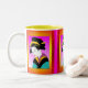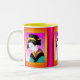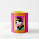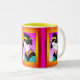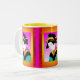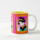 A caneca colorida é uma combinação de gráficos e vem em dois tamanhos - 11 oz e 15 oz - máquina de lavar louça e micro-ondas seguras