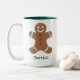 Pão de gengibre na caneca branca de Natal de 2 tons personalizada de 15 oz.