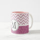 caneca personalizada Glam Faux Glitter Chevron monograma rosa