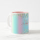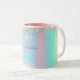 Caneca Holográfica Unicorn - Uma caneca cintilante tentilante com turquesa mista, rosa e mauve e brilho amarelo claro. Você pode personalizar esta caneca adicionando seu nome e suas iniciais.