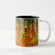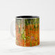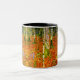 Café Mug com a pintura Farmhouse de Gustav Klimt com Birch Trees (1903). Uma paisagem autóctone de folhas de laranja numa floresta de pássaros com lindas flores azuis. Um presente maravilhoso para fãs de Arte Nouveau e de Arte Austríaca.