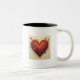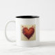 Uma caneca com um logótipo cardíaco fofo. Se você beber café desta xícara, você sentirá amor.