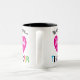 Heart of a Teacher Gift Pink Black Script Two-Tone Coffee Mug. The letters for heart are within the word "teacher". Fun design in a modern script font to customize for you or your child's teacher. Let them know they are appreciated with a thoughtful custom gift. Personalizre the teacher's name, the school year or current year, and name of the child. Text is editable, delete any text you wish to remove. Design is original to Cross Fox Design.