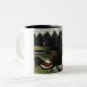 Caneca De Café Em Dois Tons Hen com seus Pintinhos em uma paisagem rural