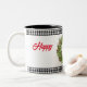A caneca de café cerâmico festiva é mostrada com um impressão de coroa festiva. Personalizar ou comprar como está.