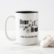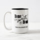 Casa personalizada Docinho Café de dois tons Mug Sinta-se aconchegante dentro da sua casa com esta caneca de café personalizada com uma citação padrão 'Home Sweet Home' e na base está o nome da família. É um presente excelente para a celebração do aquecimento doméstico, mas também para outras ocasiões. Personalize esta modelo clicando no botão PERSONALIZAR para alterar o nome da família.
