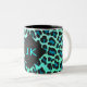 Caneca De Café Em Dois Tons Impressão de Leopardo Negro e Teal