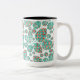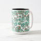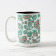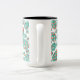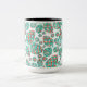 Winter/Holiday/Christmas Pinecone Mug - as cores são azul-aqua, castanho e branco.