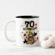 T-shirt cómicos do aniversário do 70, botões do aniversário, cartões, canecas, etiquetas, e outros artigos do roupa e do presente do aniversário do 70 que caracterizam um gato parvo em um chapéu e em um texto do partido que peça "70 já?".