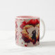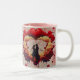 Uma silhueta romântica de um casal em um abraço, rodeado por um coração vibrante e pétalas vermelhas espalhadas. Perfeito para convites de casamento e celebrações do Dia dos Namorados, capturando a essência do amor e da união