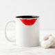 Caneca de café cerâmica mostrada com impressão de lábios. Personalize este item ou comprar como está.