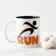 Tirando T-shirts, canecas, bolsas, guardas, topos de tanques, capuzes, e outros roupa e presentes para corredores com uma pista de silhueta preta e um texto laranja que lê RUN. Esses itens de roupa RUN e presentes são excelente para qualquer um que esteja treinando para um 5K, qualquer um que apenas ame correr, ou alguém que já tenha realizado várias maratonas!