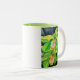 Caneca De Café Em Dois Tons Laranjas flores verdes e amarelas