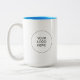 Trendy Elegant Modern Simple Template Upload Your Own Business Logo Brand Promotional Classic Two-Tone Mug 15 oz Light Blue And White Coffee Mug.