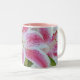 A caneca de café cor-de-rosa & branca de Lillies do Stargazer em um rosa alinhou a caneca