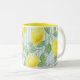 Caneca De Café Em Dois Tons Limões da aguarela e listras azuis