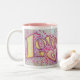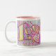 Cores d'água pintando a palavra amarela ouro "Amor" com um duplo coração. Rosa e roxo destaca as letras e o coração. Um brilho leve de brilho no topo dá à pintura um brilho brilhante.