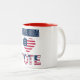 The Love USA Vote A caneca de café com duas tonalidades apresenta cores vibrantes e sofisticadas, vermelho, branco e azul, adornada com uma bandeira dos EUA em forma de coração. Perfeito para indivíduos que buscam espalhar amor e positividade enquanto incentivam o voto nas próximas eleições.