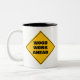 Caneca De Café Em Dois Tons Madeira amarela engraçada para frente sinal de cau