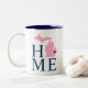 Caneca De Café Em Dois Tons Marinho inicial do Michigan, Blue and Pink Custom