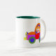Uma criança do litte em seu primeiro carro convertble vermelho. uma caneca das férias para as meninas, toma-o em qualquer lugar. Ajuda o leite a ir abaixo de fácil.
