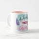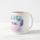 a caneca cor-de-rosa do Dois-tom com "minhas pessoas favoritas chama-me Auntie" impresso na parte dianteira no rosa em um fundo da aguarela da cerceta e das cinzas com penas roxas.