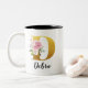 Caneca De Café Em Dois Tons Monograma Inicial de Nome Floral Personalizado