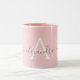 Caneca De Café Em Dois Tons Monograma Inicial de Nome Rosa Branco Script Elega