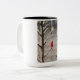 Aproveite seu café ou chá nesta linda caneca apresentando uma família de cardeais no inverno. O original, intitulado "Árvore Familiar", foi pintado pelo artista David Pepper em 2022.