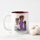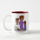 Uma caneca com um desenho engraçado sobre pais e dever de casa. Arte original de BD Cartoons.