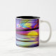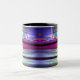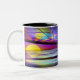 Caneca de café com minha arte digital de um mundo oceânico alienígena brilhante, colorido e estranho.