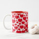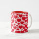 A caneca de café cerâmica é mostrada com um impressão de coração festivo Namorados. Cor Vermelho Interior Personalize este item ou comprar como está.