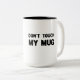 Caneca De Café Em Dois Tons Não toques no meu slogan muito engraçado