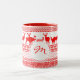 Padrão tradicional e bonito da Lapónia para presentes de natal, ocasião e muito mais. Rein veers e cristais de neve em vermelho em caneca personalizável de dois tons com etiqueta branca para monograma ou nome.