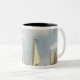 Caneca De Café Em Dois Tons Navios na água calma com figuras pela costa